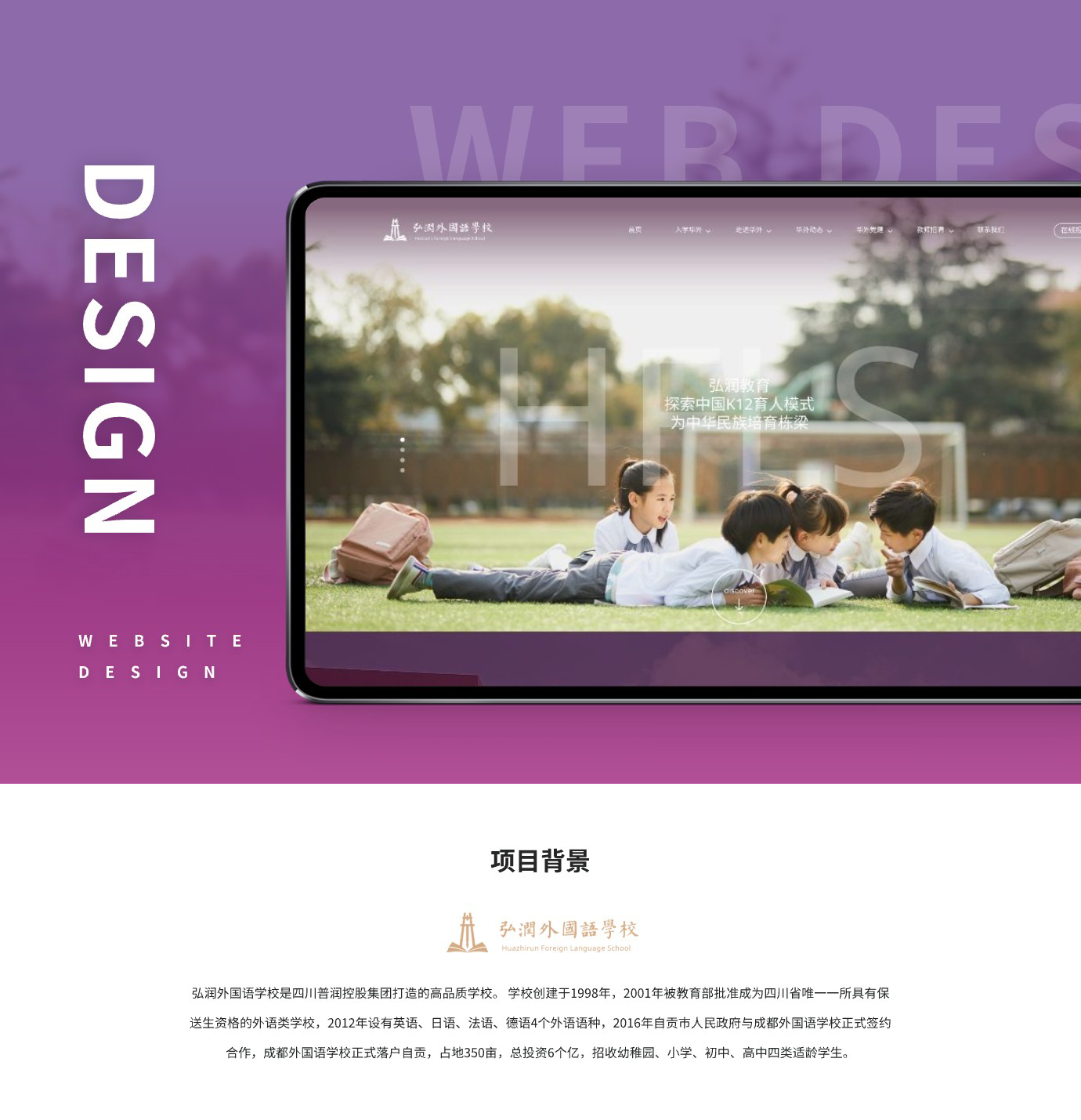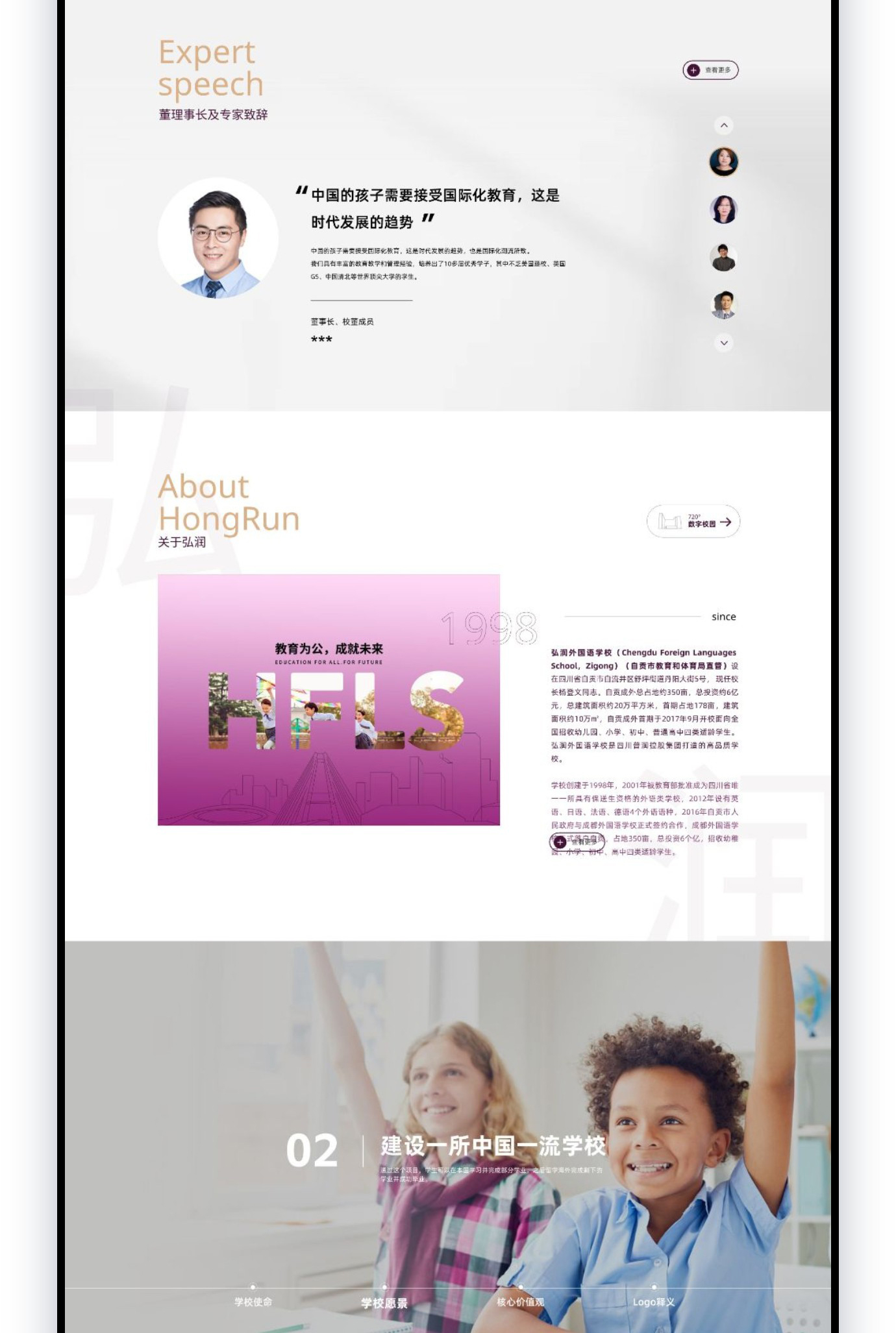 自贡弘润外国语学校创办于2017年9月,是自贡市第一所涵盖幼稚园、小学、初中、高中的全日制民办学校。学校在沉淀原自贡成外教育教学精髓的基础上,与四川轻化工大学、香港优才(杨殷有娣)书院等院校紧密合作,创新融合发展本校特色课程,旨在建构大美育办学特色,培养对社会、对国家有贡献的杰出人才。学校将开设香港DSE课程,助力学生逐梦世界名校。